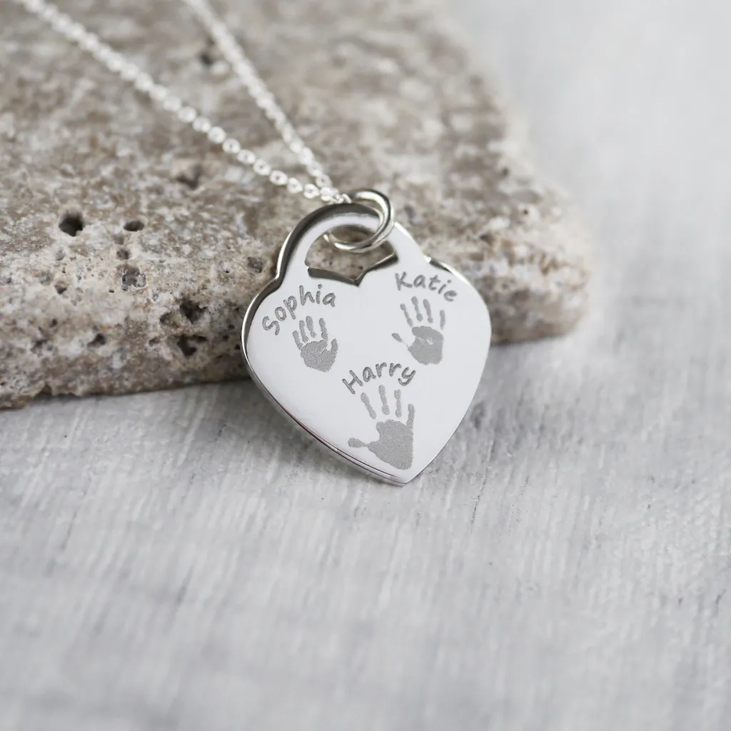 I had an image in my head how I wanted my handprints placed on the necklace so emailed them telling them what I wanted. They happily accommodated me and sent a proof image before printing, customer service was brilliant. Necklace arrived quickly and well presented. I can honestly say it’s the most perfect piece of jewellery.