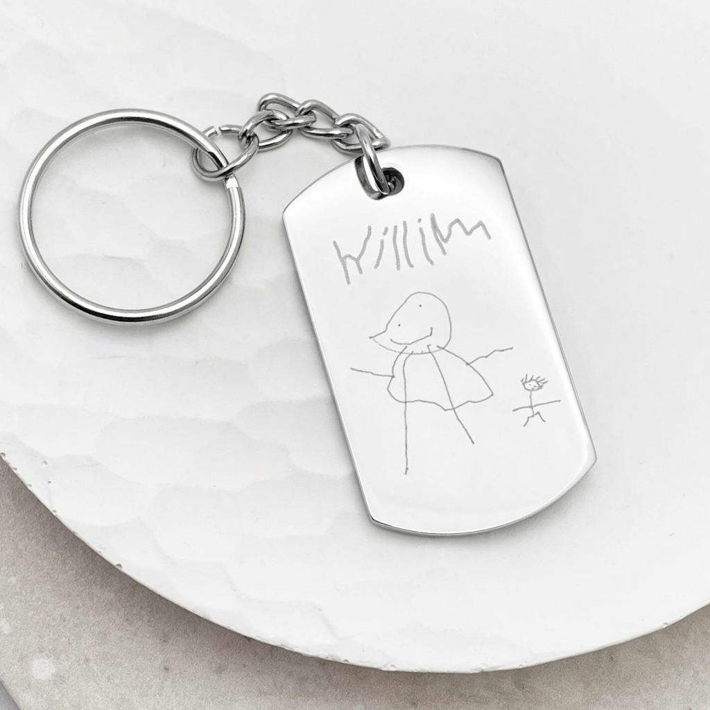 Turn your child's artwork into a great keepsake or gift with our Children's Drawing Keyring. Capture their first proper doodle, or have them draw something and write a message or their name for someone special.