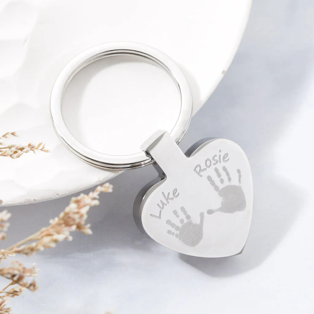 Carry your little ones with your wherever you go with our engraved handprint keyring, featuring prints, names and special dates or messages.
